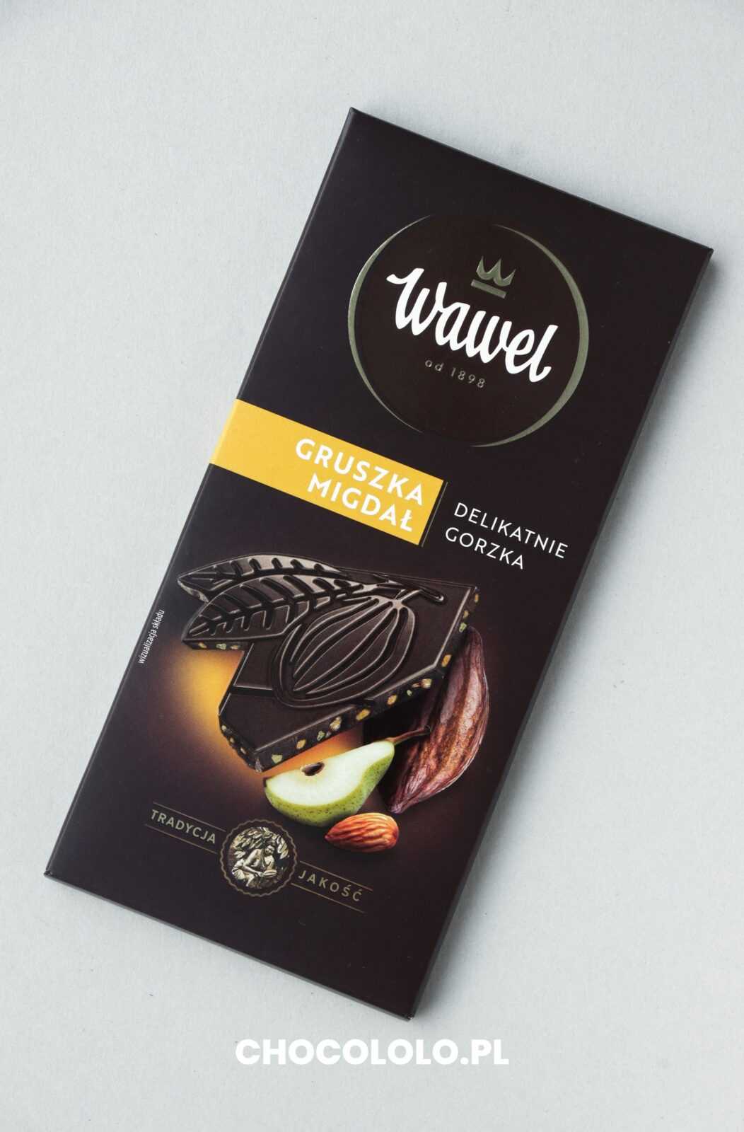Recenzja delikatnie gorzkiej czekolady Wawel z gruszką i migdałem: