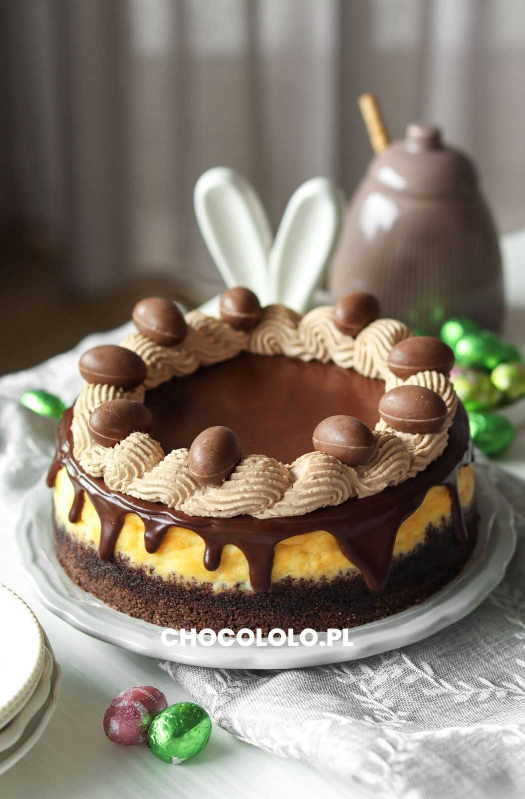 sernik z brzoskwiniami i czekoladą na wielkanoc